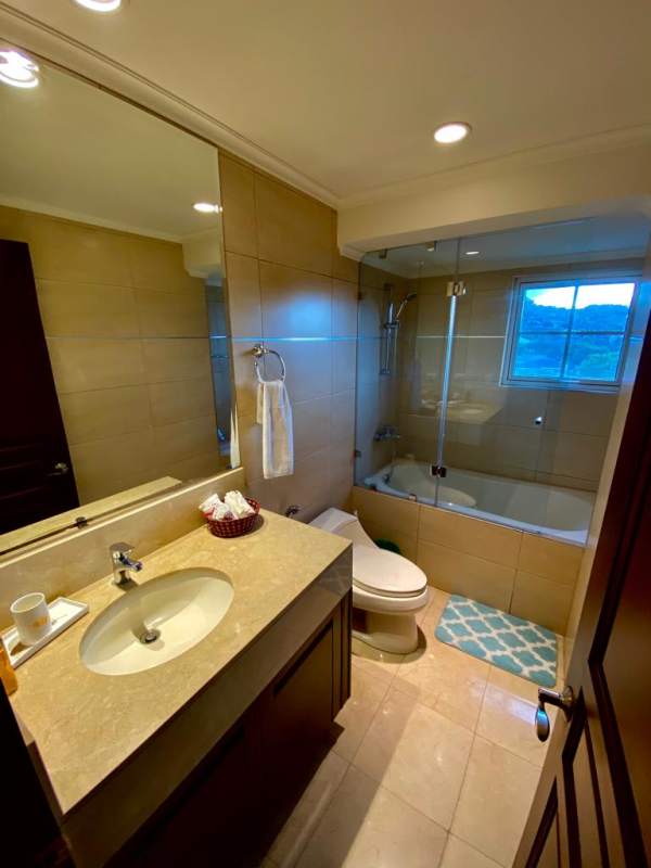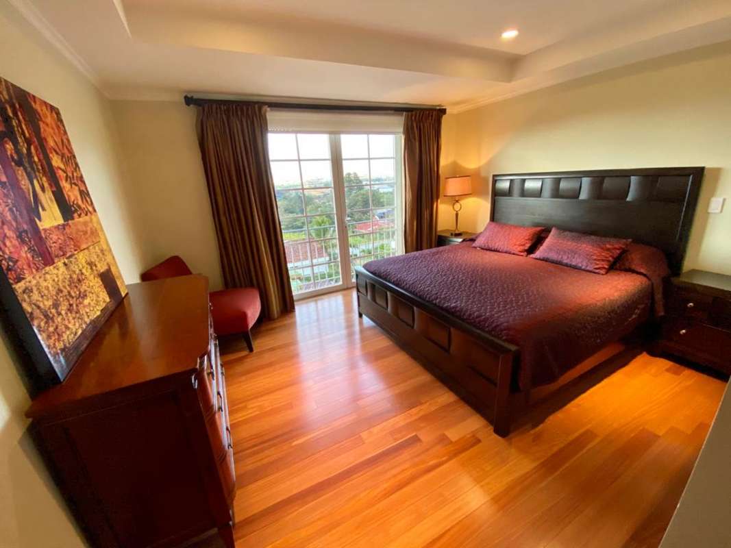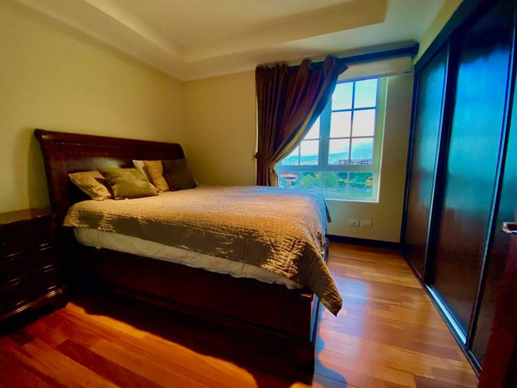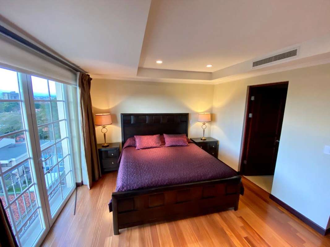 Apartment in the best Vertical Condominium in Escazú. Maximum security, located between the American and British Embassy properties, near Banks, Multiplaza Mall, the best restaurants, and highly rated schools and colleges in CR. The condominium offers concierge and reception services, and has an Irish bar for the exclusive use of residents. It also has a semi-Olympic pool, gym, jacuzzi, and sauna. Master BR with walking closet, a maid's room with bathroom, a garage and storage room, 145 square meters of living space, and is fully furnished. Registered with a Corporation.