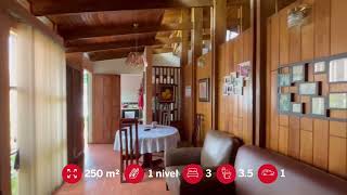 La distribución actual incluye tres dormitorios, 3.5 baños, sala principal de cielos altos, comedor, sala de TV, oficina, cocina independiente, patio de luz, área de lavado y una pequeña bodega.Tanto el jardín frontal como el amplio patio posterior rodean la casa con vegetación tropical, ofreciendo espacios abiertos para disfrutar del aire libre, mascotas o proyectos paisajísticos.