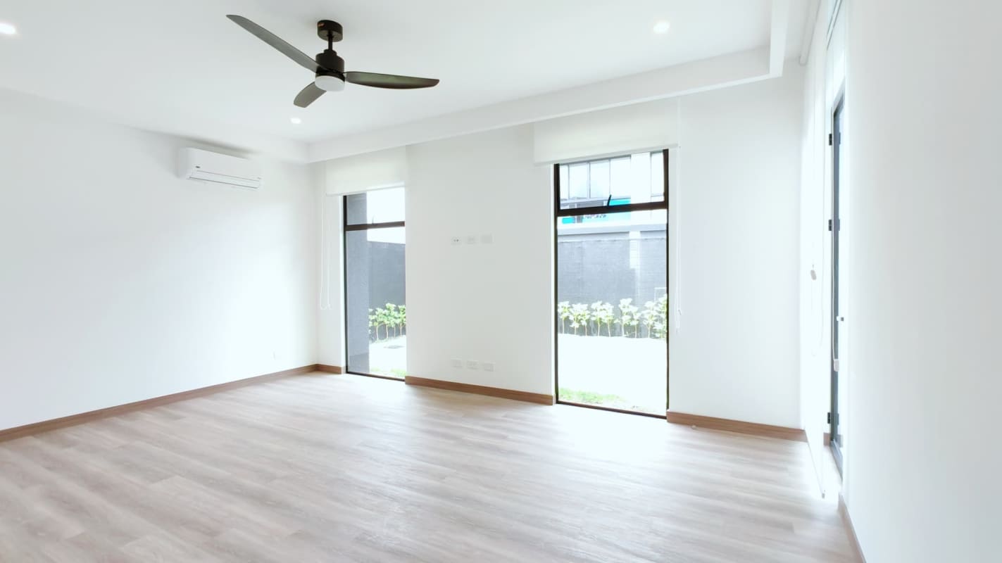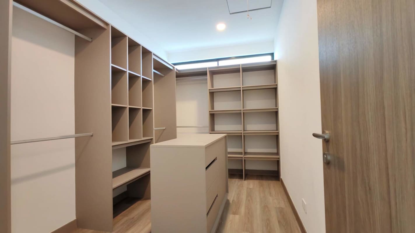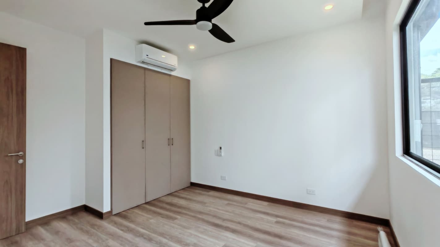 - Habitación principal con gran espacio, cómodo walk-in closet, aire acondicionado y amplio baño ofreciendo privacidad y confort.