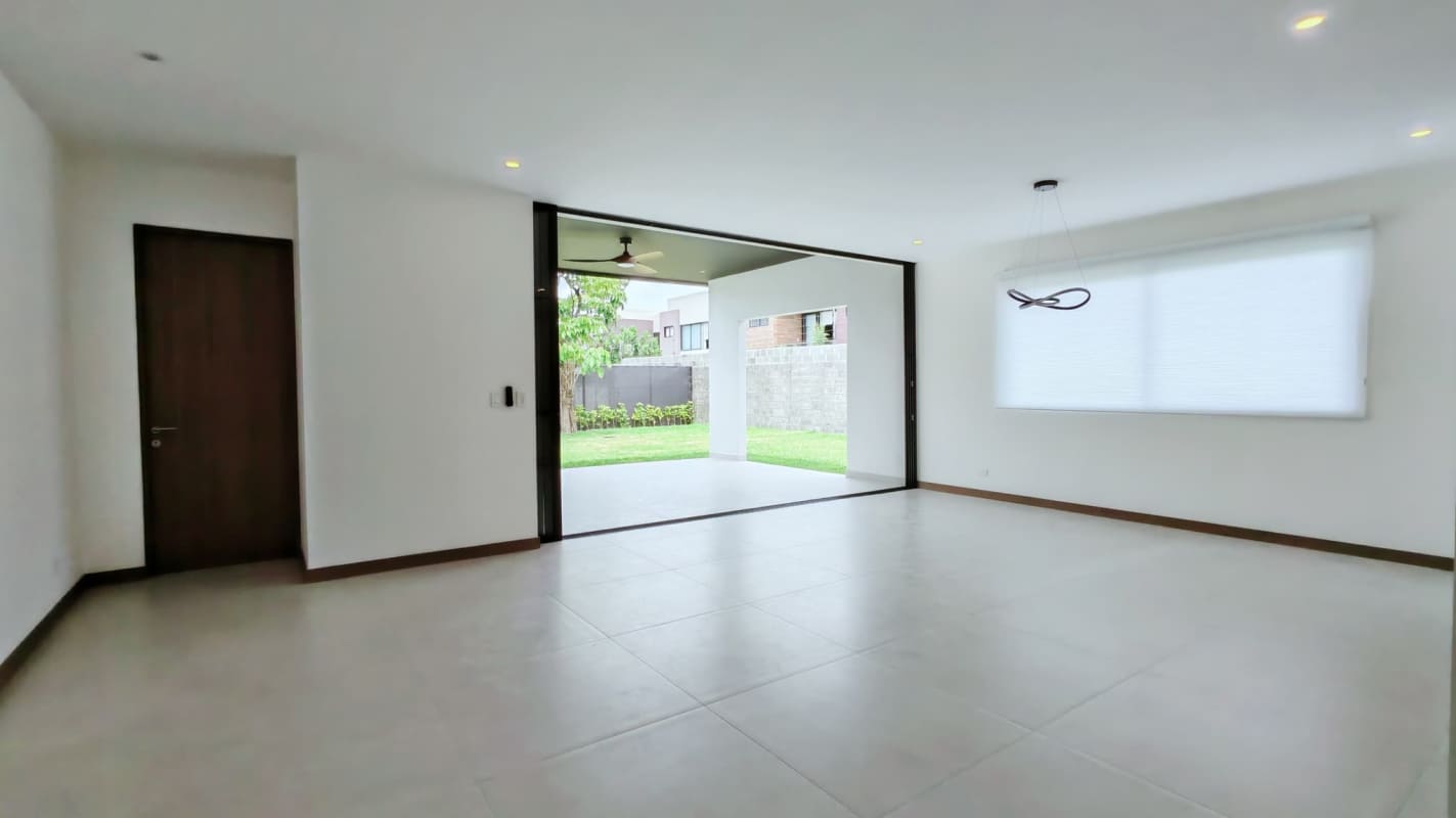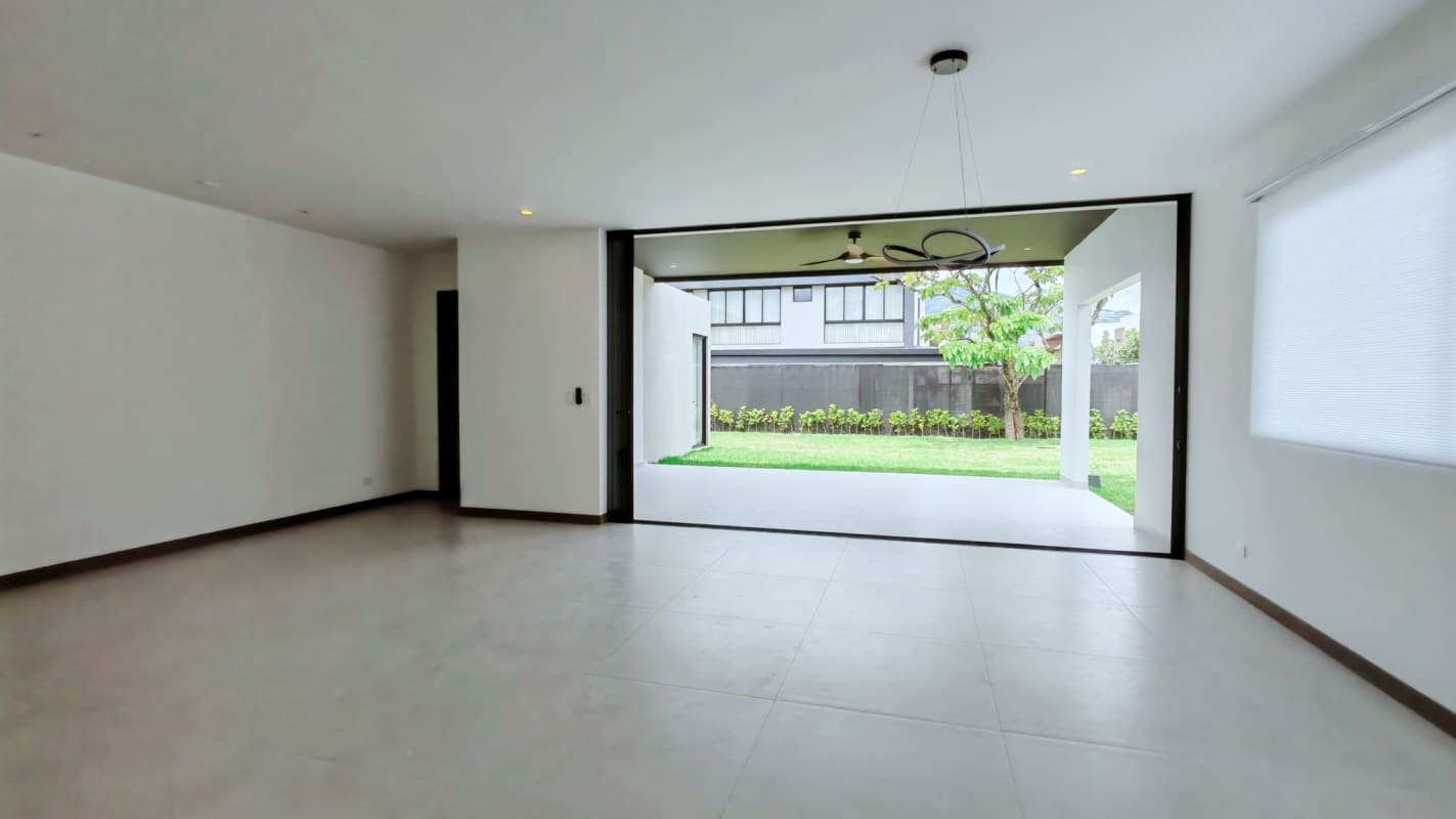 - Amplia sala comedor con grandes ventanales para llegar a una terraza techada con acceso al jardín, lo cual la hace muy ventilada y permite la entrada de luz natural.