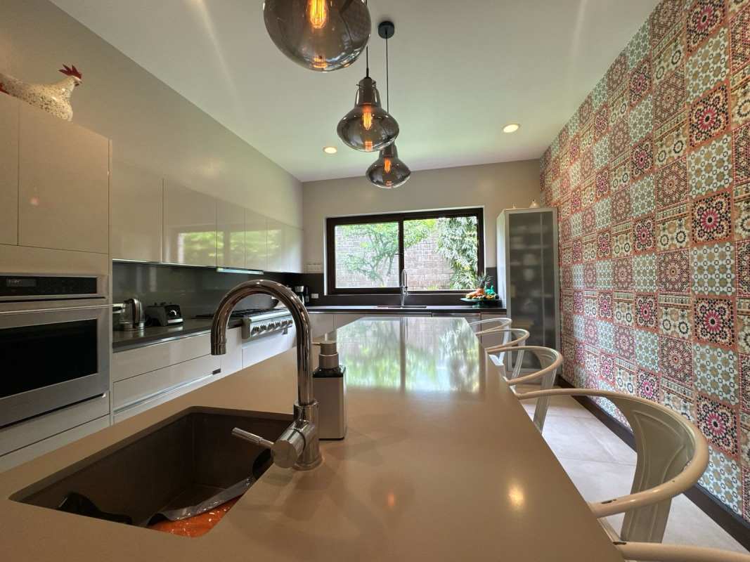 • Sala de TV, cuarto de estudio/oficina, antecomedor, cocina con isla