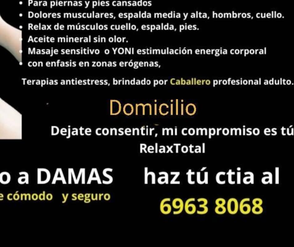 Caballero adulto profesional, brinda terapias relajantes, para el stress diario dolores musculares, espalda, cuello, pies cansados, masajes sensisitivos.EXCLUSIVO A DAMAS, local zona salv. Del mundo y domicilio lugar de tu preferencia, se atiende x citas al
