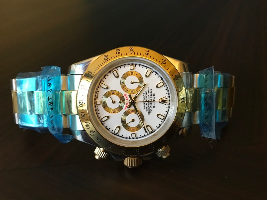 Vendo Rolex Daytona Cronografo, con caratula blanca, pulsera combinada, acero y oro, caja de acero con detalles en oro. Cronografo 100% Funcional.