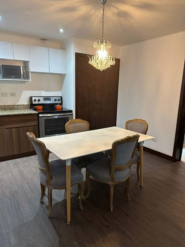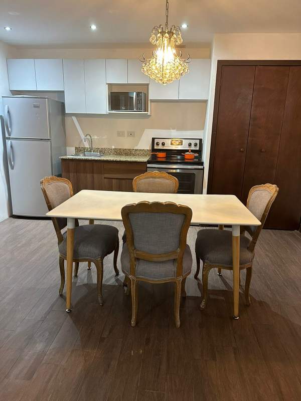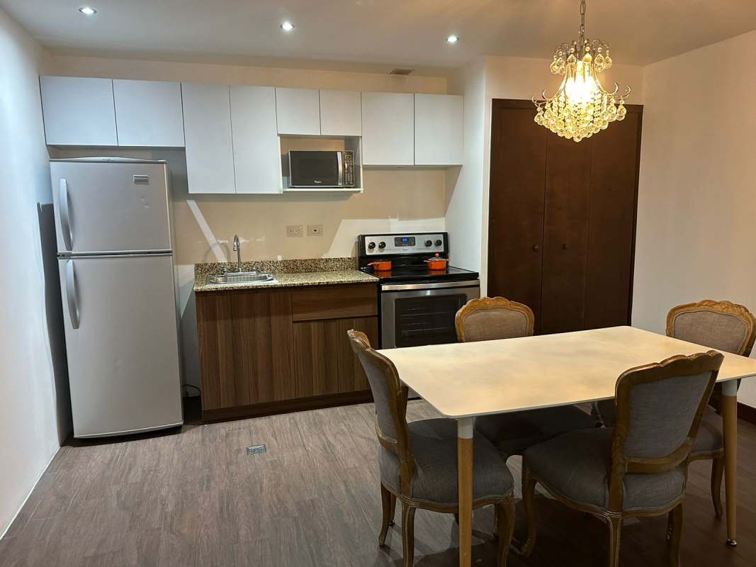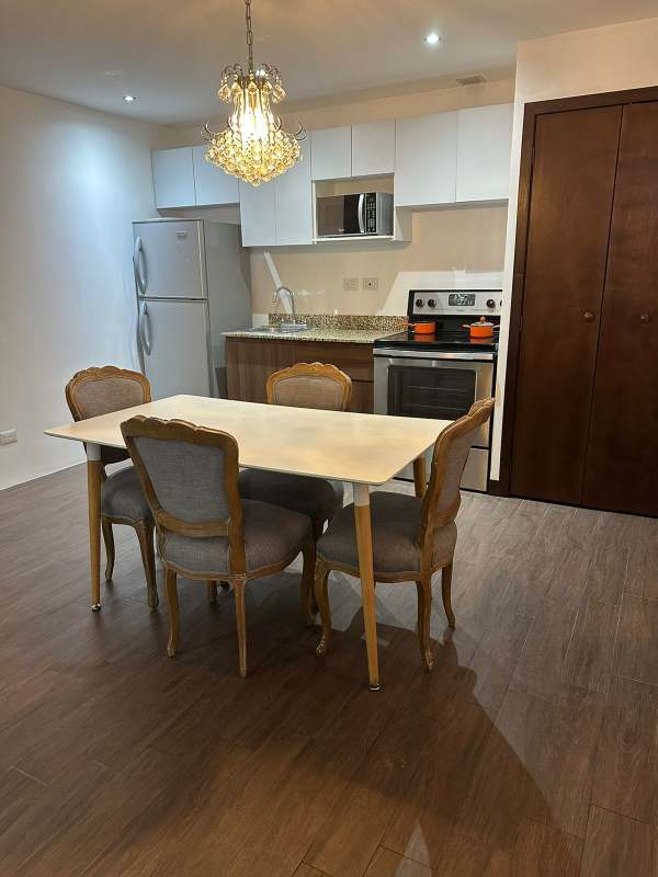 Apartamento tipo estudio con línea blanca, cocina con gabinetes, dormitorio con closet, garita de ingreso y salida. Excelente ubicación accesible a bancos, transporte, supermercados, restaurantes.