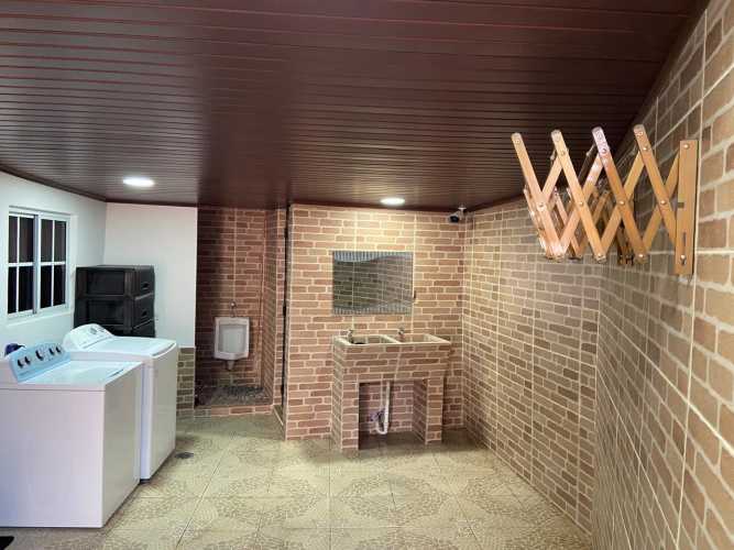 La casa cuenta con 6 cuartos, sala, comedor, cocina, lavandería terraza de descanso, área social, piscina, tiene 4 baños, ...